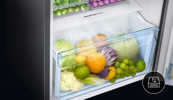 Featuring a MoistFresh Zone, this refrigerator can keep perishable vegetables and fruits fresh for a long period of time. Also, in the case of low humidity, a tight seal prevents moisture from escaping, while in the event of high humidity, a vent eliminates excessive moisture.