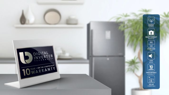 Samsung guarantees the durability of its energy efficient Digital Inverter Compressor. Always active, it automatically adjusts its speed to meet cooling demand, ensuring a trouble-free, longer-lasting refrigerator.