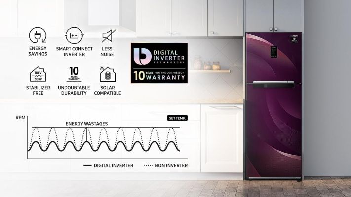 Protect the refrigerator from power fluctuations*. The Stabilizer Free Operation keeps it working steadily and reliably. If the voltage increases too much it automatically cuts the power to prevent electrical damage. The compressor even operates at 50°C. So you don’t need a separate stabilizer.