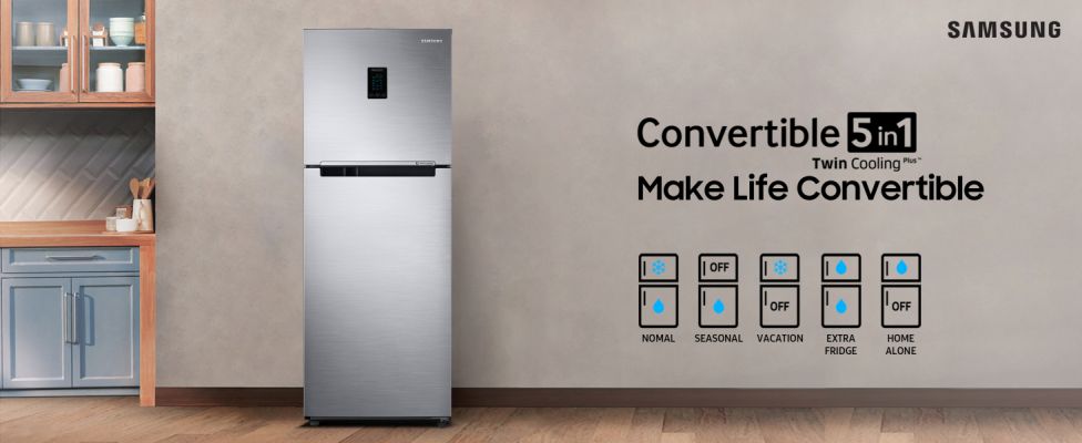 Samsung 324 L 2 Star Inverter Frost Free Double Door Refrigerator(RT34T4522S8 ELGNT INX, Convertible )