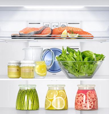 Ensure your food stays fresh for twice as long. Twin Cooling Plus preserves food in the optimal conditions by maintaining a humidity level of up to 70% in the fridge, compared to just 30% in a conventional TMF. So perishable food stays moist and fresh for longer, which helps to reduce waste.
