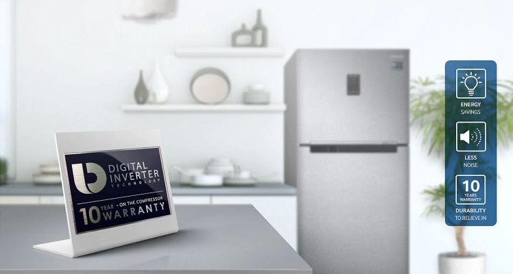 - DescriptionThe Samsung 411 litres 3 Star Double Door Refrigerator, Refined Brown RT42R5588DX comes with a brilliant design that will level up your kitchen décor. It comes with a net capacity of 411 Litres and its 3 star rating is convincing because even continuous use will not consume much units. You can easily convert the freezer into a fridge. The Door Alarm will sound a very audible alarm if the door is not shut properly. Also the Digital Inverter Compressor automatically adjusts its speed in response to cooling demand.