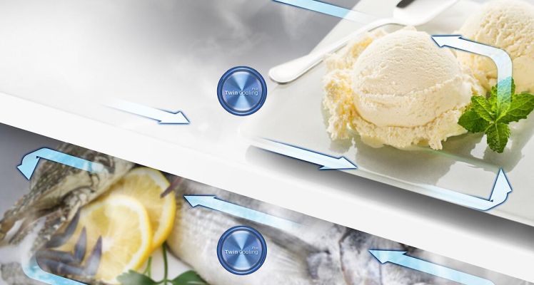 The Twin Cooling Plus™ system cools the compartments separately to stop unexpected odors spreading from fridge to freezer. So frozen food retains more of its original flavor.