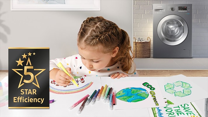 Spend less on bills and protect the planet. The washing machine’s high energy efficiency is certified by the Bureau of Energy Efficiency (BEE) with its highest “5 star” rating.Its low power usage saves you money and also reduces harmful CO2 emissions, so it has less impact on the environment.