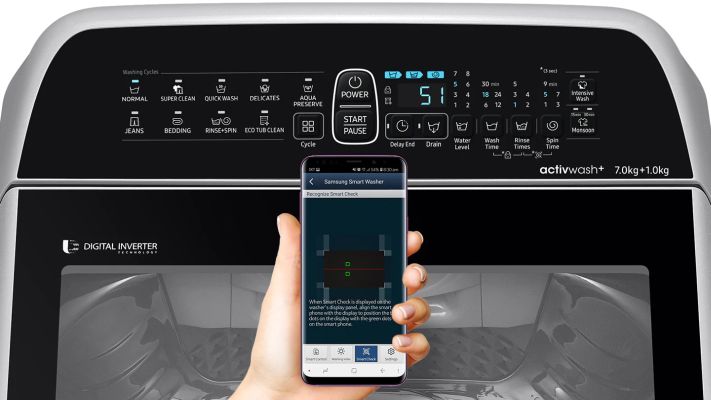 - DescriptionYou are looking at the Samsung WA65N4560SS/TL Top Loading Fully Automatic Washing Machine. Measuring 54 cm in width, 56.8 cm in depth, 97.2 cm in height, you can place this 6kg front load washing machine in the bathroom or its side wall, kitchen area or corridor. This product is manufactured with Ceramic Heaters that improves the wash performance and reduces calcium build-up in the washing machine. This washing machine's Diamond Drum’s soft curl design effectively removes grime while being gentle on the fabric. The Eco Drum Clean technology maintains an odour-free washer for clean, fresh and hygiene wash results. Crafted with a Digital Inverter Motor, this washing machine delivers superior wash results in silence. Apart from these amazing features, this front load washing machine comes with a Smart Check feature that works with the Samsung Smart Washer/Dryer app. Available for free on both, Android and iOS devices, this app detects and decodes flaws using your phone’s camera and provides solutions on the phone’s screen. Along with this, you can even view details of the wash cycle, current water temperature and more. Crafted with such intelligent features and elegant built this 6.5kg washing machine will be perfect for your daily laundry needs.
