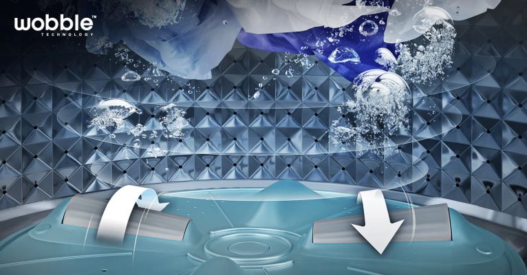 Stop clothes from getting tangled up and damaged. Wobble technology provides gentle care of fabrics. Its Wobble pulsators generate a dynamic, multi-directional washing flow that prevents tangles, twists and knots. It also gently and thoroughly cleans your garments with its increased washing power.
