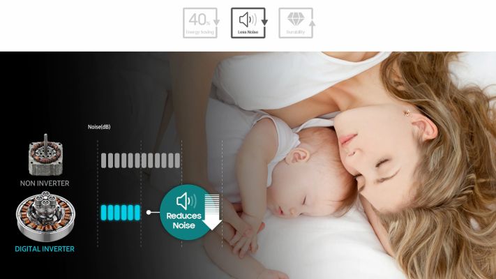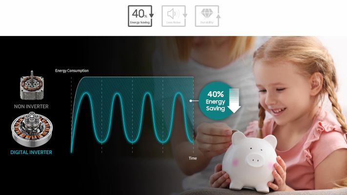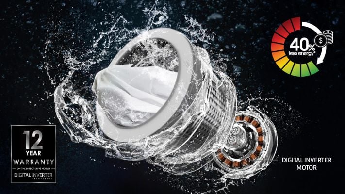 Enjoy greater energy efficiency, less noise and a long-lasting performance. Digital Inverter Technology uses strong magnets for a quieter and more powerful performance, but consumes less energy. It provides outstanding durability, backed-up by a 12 year warranty.