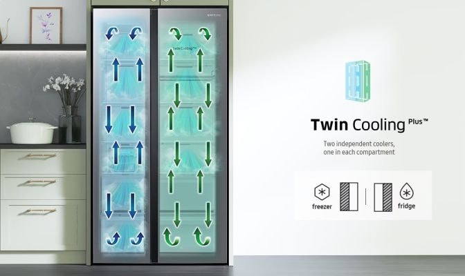Ensure food stays moister and fresher for longer. Twin Cooling Plus optimizes the temperature and humidity in the fridge and freezer using independent cooling in each compartment. It preserves food in the optimal conditions and protects its natural flavour by preventing odors from mixing.