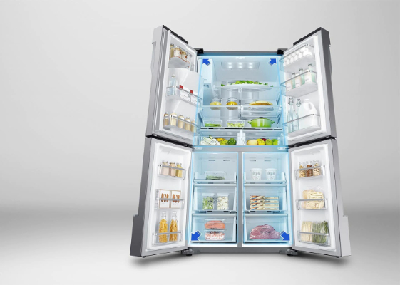 Store and see moreHas a big capacity, so there’s plenty of space in the fridge and freezer to store any shape or type of food. And it has 4 doors that open out wide, so you can see everything at a glance.