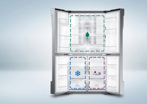 Revolutionary coolingA Triple Cooling System independently controls and optimises the temperature, maximises humidity and prevents odors mixing in 3 compartment. A Metal Cooling plate also helps to keep the air cool for longer.