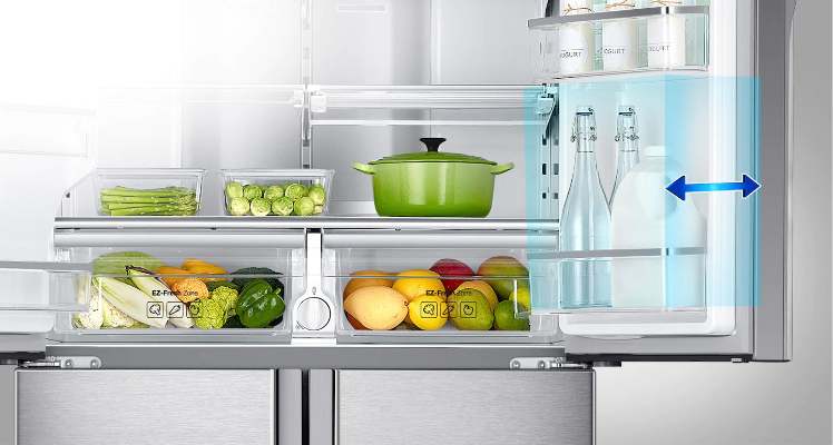 Holds larger itemsAn Easy Big Door Bin lets you safely store larger items inside the door. It can handle bulky cartons of milk and juice and two rows of drinks cans and bottles. So it frees up shelf space and is great for parties!