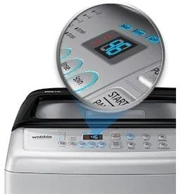 - DescriptionYou are looking at the Samsung WA70M4500HL/TL Top Loading Fully Automatic Washing Machine. Measuring 54 cm in width, 56.8 cm in depth and 92.6 cm in height this sleek looking top load washing machine can be placed in the dry area of your home or at the side wall near the bathroom or in any other preferred corner of your home. This top load washing machine is designed with a 6-blade stainless steel pulsator that effectively removes dirt from clothes while being gentle on the fabric. The slanted, dual-cluster control panel and ice blue LED display adds an extra touch of style and provides clear information about the selected program. Designed with a built-in sink allows, it can pre-treat heavily soiled clothes. Built with a high-quality sturdy glass lid makes it easy to view the washing machine drum. The unique curl design of the diamond drum in this top load washing machine effectively removes stubborn stains from clothes while being gentle on the fabric. The built-in Magic Dispenser dissolves detergent evenly before the wash cycle starts. The Magic Filter in this fully automatic washing machine gathers lint and other unwanted particles suspended during the wash cycle. The Eco Drum Clean technology used in this top load washing machine keeps the washer fresh and odour-free without the use of any chemicals. With stylish design and amazing features, this 7kg top load Samsung washing machine is a convenient choice for your laundry needs.