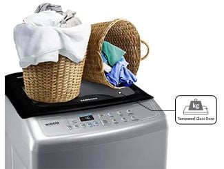 The Samsung washing machine features a tempered glass door, so it’s easy to see inside, but it will last much longer. It’s designed to withstand a great deal of pressure and it is strong against damages and scratches. So it will stay looking almost as good as new for a long time.