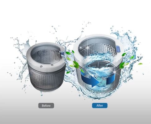 A Magic Dispenser lets you wash with less worrying about residual detergent. It creates a powerful water vortex that dissolves detergent and disperses it evenly before the wash cycle starts. *Compared to conventional Samsung top load washe rwithout magic dispenser.