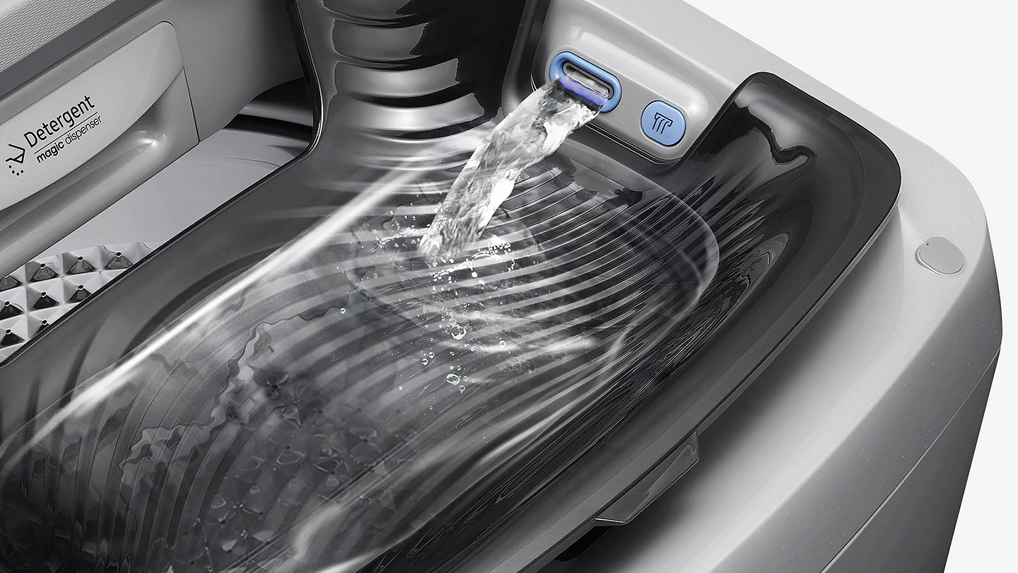 Wash without worrying about residual detergent. A Magic Dispenser creates a powerful water vortex. It dissolves liquid and powder detergent and disperses it evenly before the wash cycle starts. So it keeps the detergent box clean and minimizes the risk of any residue being left on your clothes.