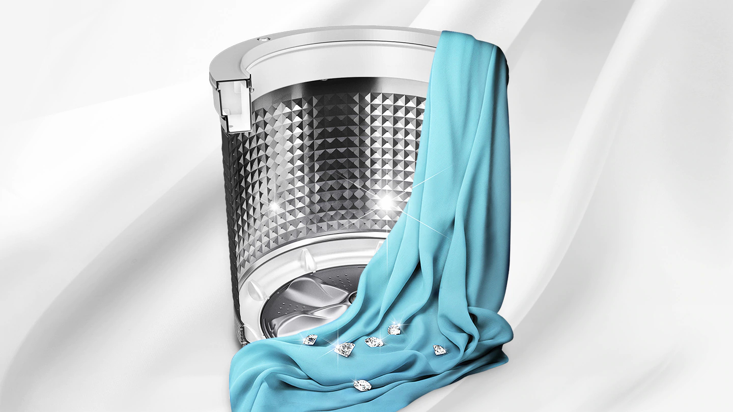 Protect your clothes from being damaged.The Diamond Drum’s unique “soft curl”design washes clothes very effectively,while treating them with care.Its smooth,diamond-shaped ridges are gentle on even delicate items.The small water exit holes also prevent fabric from becoming trapped and damaged.