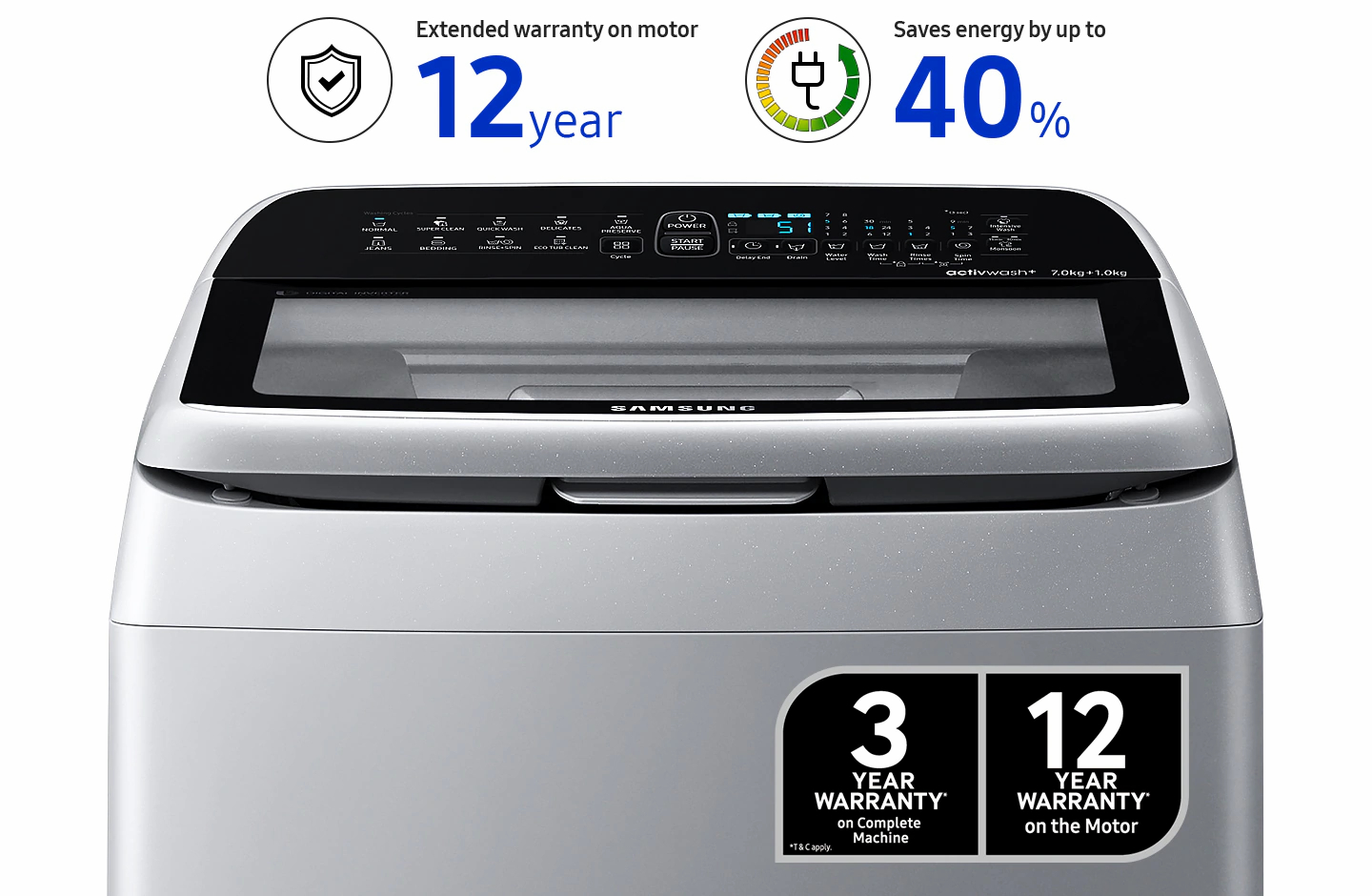 Enjoy a long-lasting, powerful performance with less energy and noise. The new Digital Inverter Technology uses strong magnets to provide outstanding durability and power. This is backed-up by an extended 12 year warranty. It also uses up to 40 percent less energy and is much quieter.