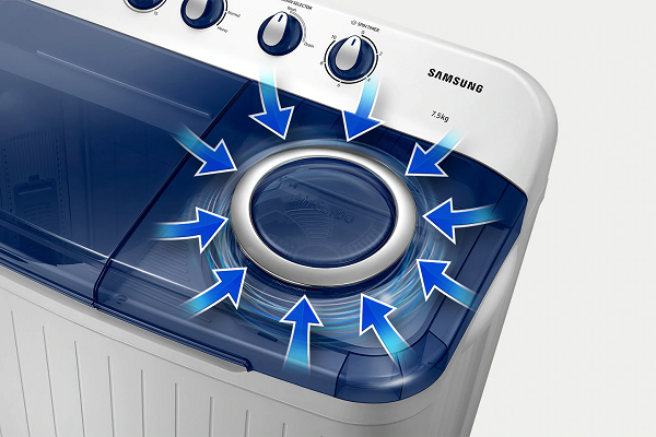 - DescriptionWashing clothes just got easier with the Samsung 7.5 Kg Top Loading Semi-Automatic Washing Machine. This washing machine packs in a powerful motor that ensures efficient performance for faster cleaning without leaving any stains on your clothes. The attractive colour and finish of the washing machine is perfect for the aesthetics of a modern space. The stable base secures the washing machine so that it does not topple while you are set at your chore.