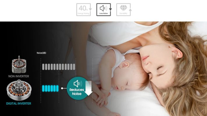 Enjoy greater energy efficiency, less noise and a long-lasting performance. Digital Inverter Technology uses strong magnets for a quieter and more powerful performance, but consumes less energy. It provides outstanding durability, backed-up by a 12 year warranty.
