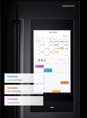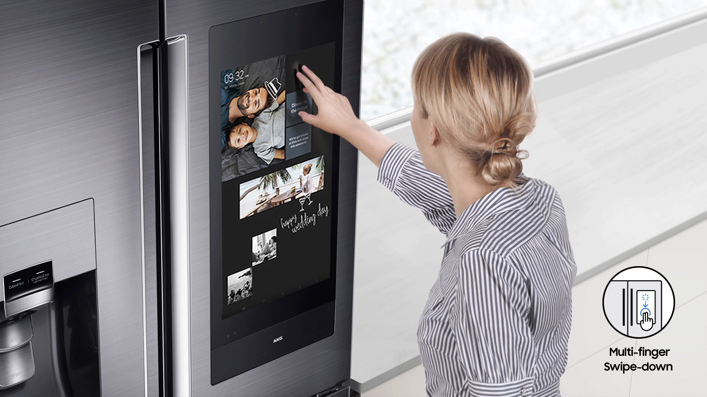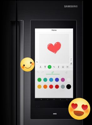 Enrich your family life by sharing news, messages and special moments on the Family Board. Simply use the home screen or your smartphone and it will synchronize with the Family Hub. You can show photos, post stickers, draw pictures and type or hand-write notes. You can even add a music player.