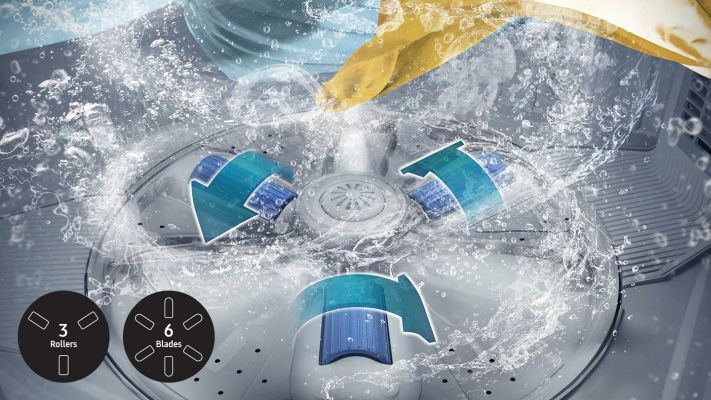 Get clothes thoroughly clean while minimizing any damage. The Hexa Storm Pulsator creates a powerful, multi-directional water flow, so it thoroughly cleans garments. It also has 3 rollers and 2 side boards that have a series of ridges, which have a scrubbing effect, but are gentler on fabrics.