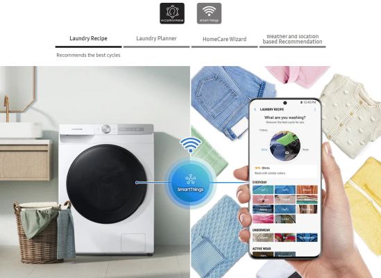 Wash easily and effectively with powerful AI Control. It personalizes washing by remembering your habits, suggesting cycles and displaying timely information. A SmartThings App provides advice on cycles, planning and troubleshooting. And it automatically selects the perfect drying course.