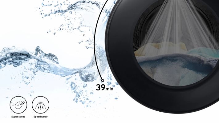 Cut your laundry time and get clothes thoroughly clean. Super Speed washes a load in just 39 minutes. QuickDrive saves time by enhancing the detergent action, while Eco Bubble ensures powerful cleaning. The rinsing time is shortened using Speed Spray and it accelerates the spin speed.