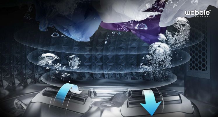 Wobble technology provides gentle care of fabrics without compromising washing performance. Wobble pulsators generate a dynamic, multi-directional washing flow that prevents tangles and increases washing power.