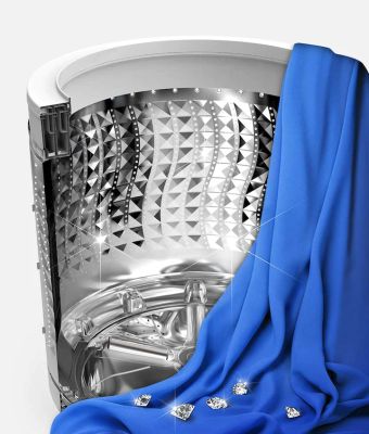 The Diamond Drum features a unique “soft curl” design with smooth, diamond-shaped ridges that's gentle on your clothes. Its small water exit holes also mean fabric is less likely to be trapped and damaged.