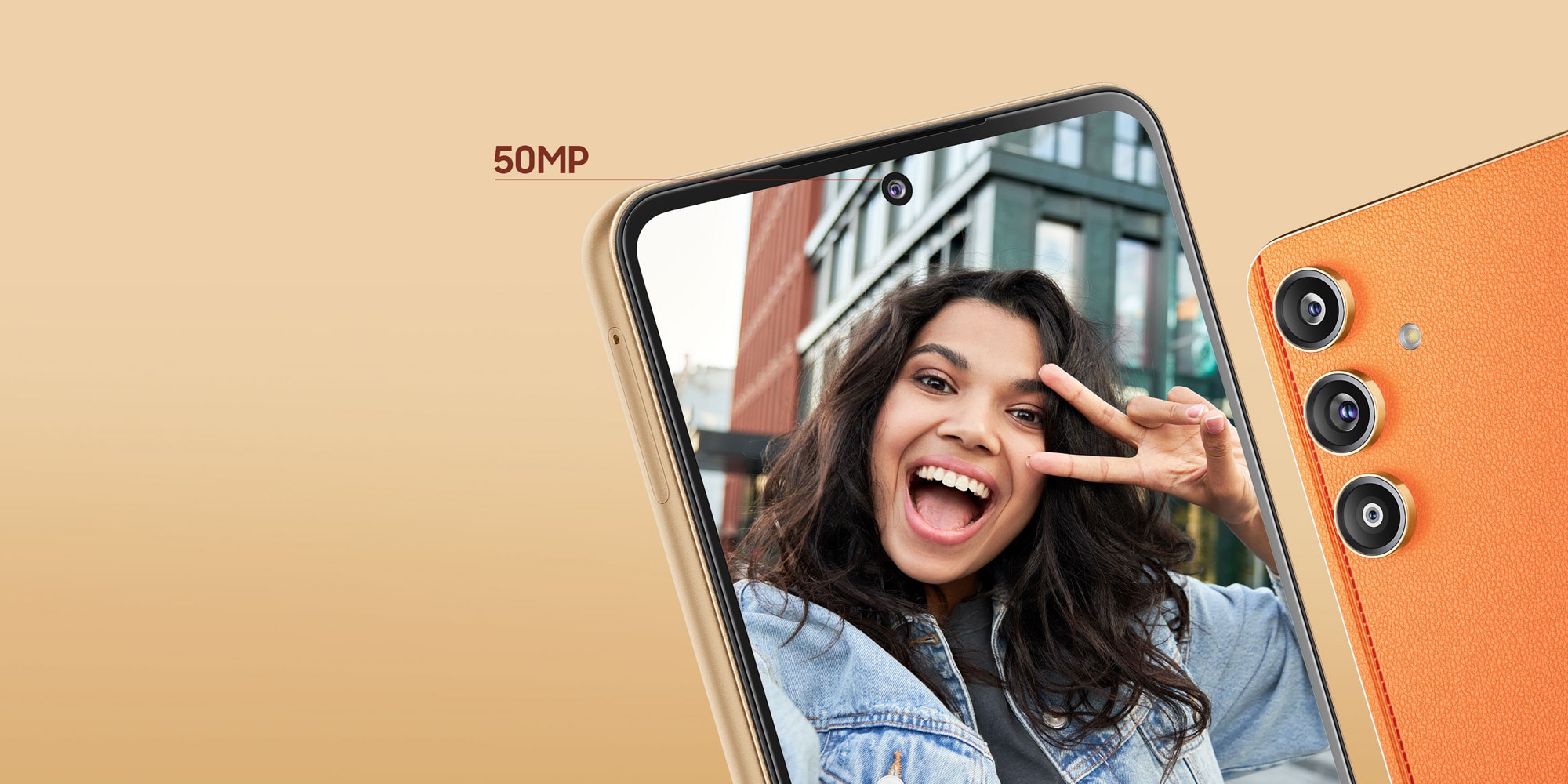 50 MP Selfie CameraFrom snapshots to stunning portraits, the 50MP Selfie Camera catches you with compelling clarity, so that you see yourself in a whole new light.