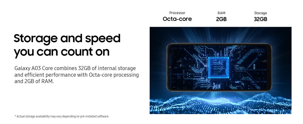 Samsung Galaxy A03 Core 32 GB, 2 GB RAM, Blue, Mobile Phone