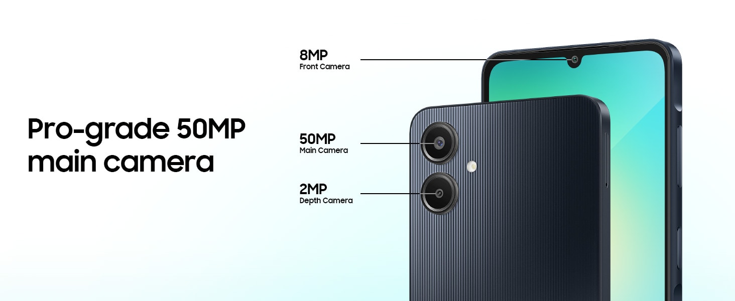 - Display: 17.01 cm (6.7 inch), 720 x 1600 Resolution, 60Hz PLS LCD (HD+) <li>Rear Camera: 50 MP Main Camera, 2 MP