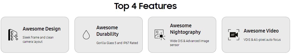 - Display: 16.31 cm (6.4 Inch) FHD+ Super AMOLED Infinity 'O'
