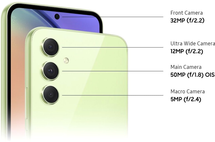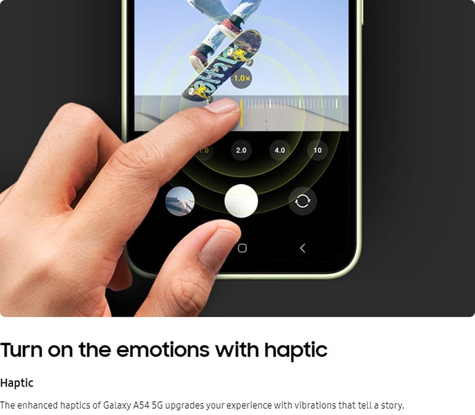 With a premium glass finish, clean camera layout and energizing colours, Galaxy A54 5G wears the Awesome identity on a seamless and graceful frame.