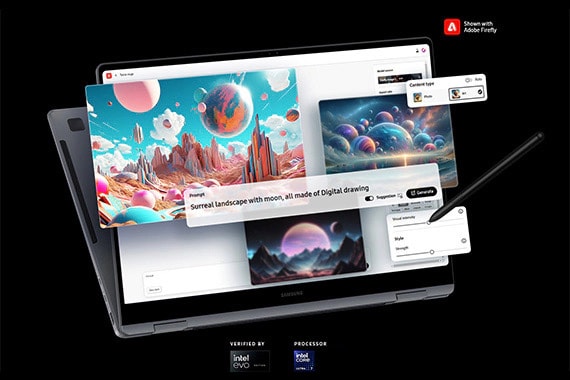 Turn any location into your creative space with Galaxy Book4 Pro 360, featuring a sleek, slim design that’s made to move with you. Follow your imagination anywhere — this powerful laptop is pleasantly portable, making it the perfect companion for your on-the-go lifestyle.