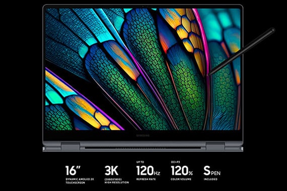 From work presentations to cartoon illustrations, your projects deserve a screen that does them justice. Bring out the best in all your endeavors on an intensely brilliant and spacious 16" Dynamic AMOLED 2X touchscreen that reduces glare even in bright sunlight.