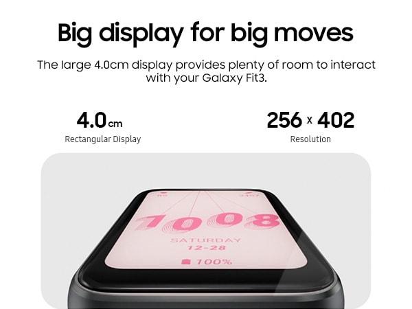 Samsung Galaxy Fit 3 Large AMOLED Display with 2.5D Curved Glass, Aluminum Body Up to 13-day Battery Backup Comprehensive Health & Fitness Tracking powered by Samsung Health app, Pink Gold