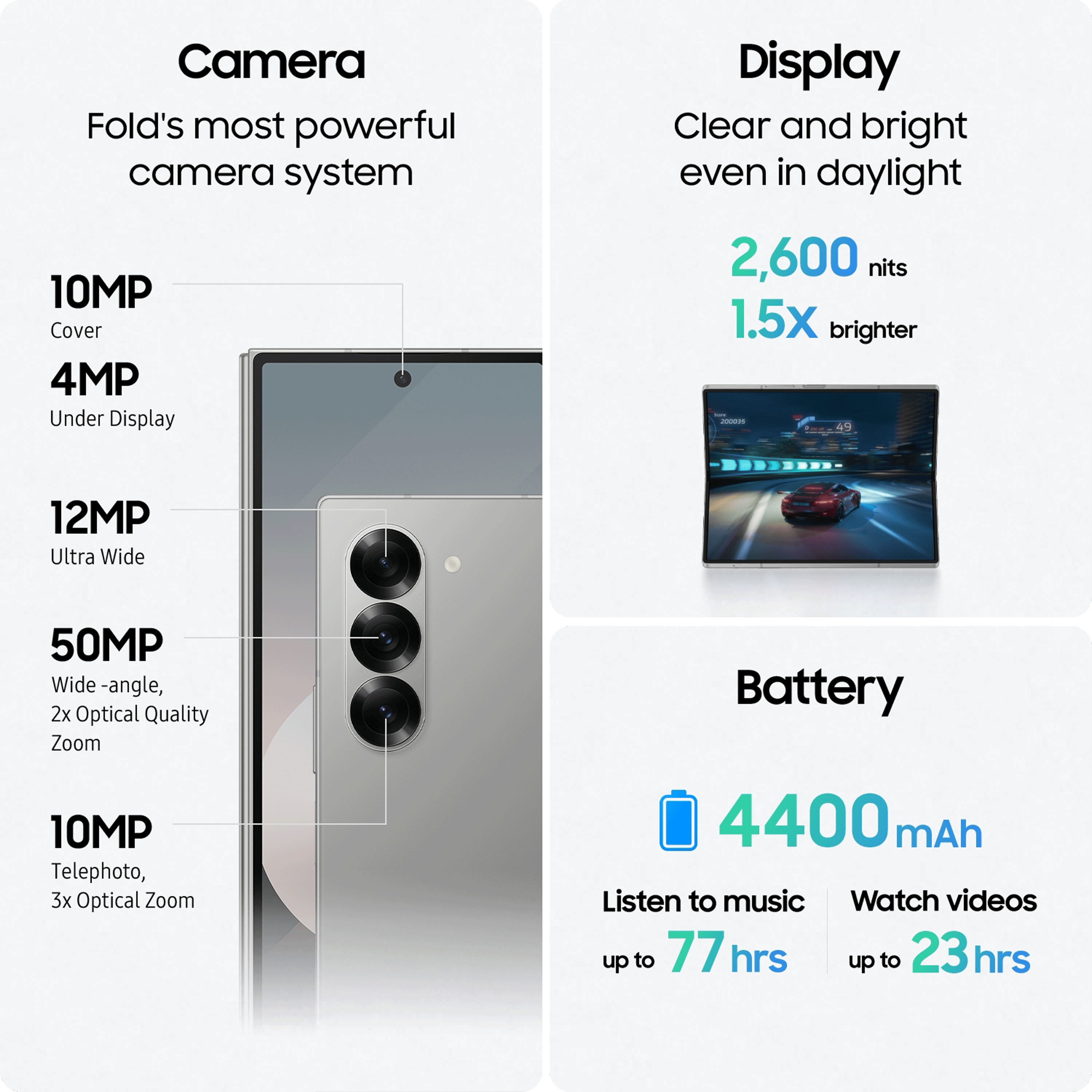 Samsung Galaxy Fold6 1TB, 12 GB RAM, White, Mobile Phone