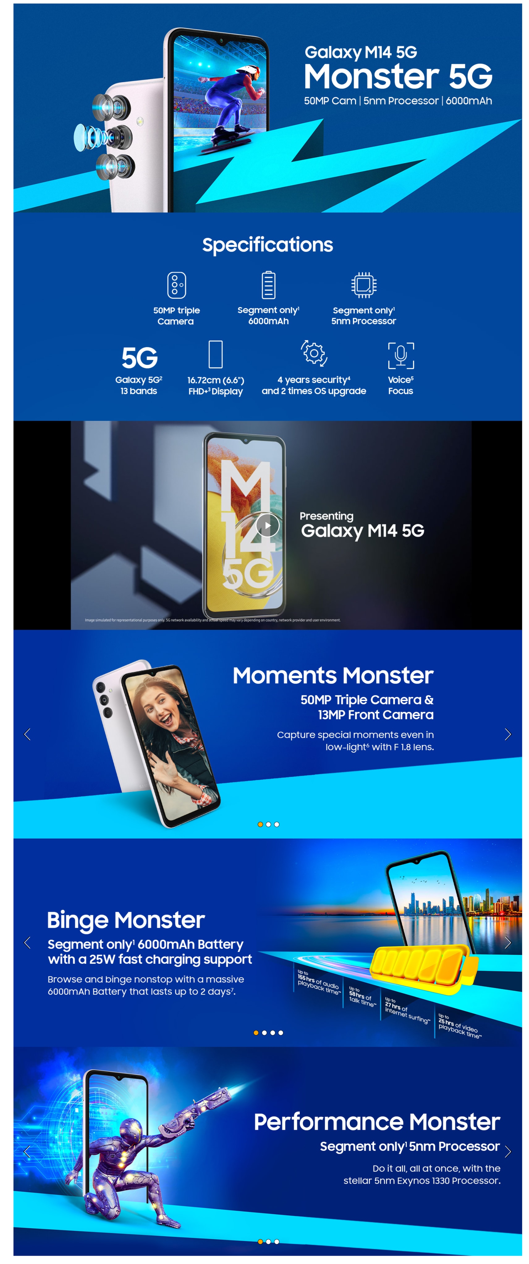 Samsung Galaxy M14 5G 128 GB, 4 GB RAM, Icy Silver, Mobile Phone