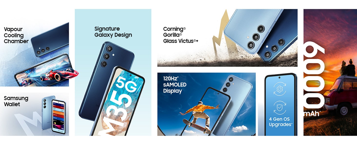 Samsung Galaxy M35 5G 256 GB, 8 GB RAM, Light Blue, Mobile Phone