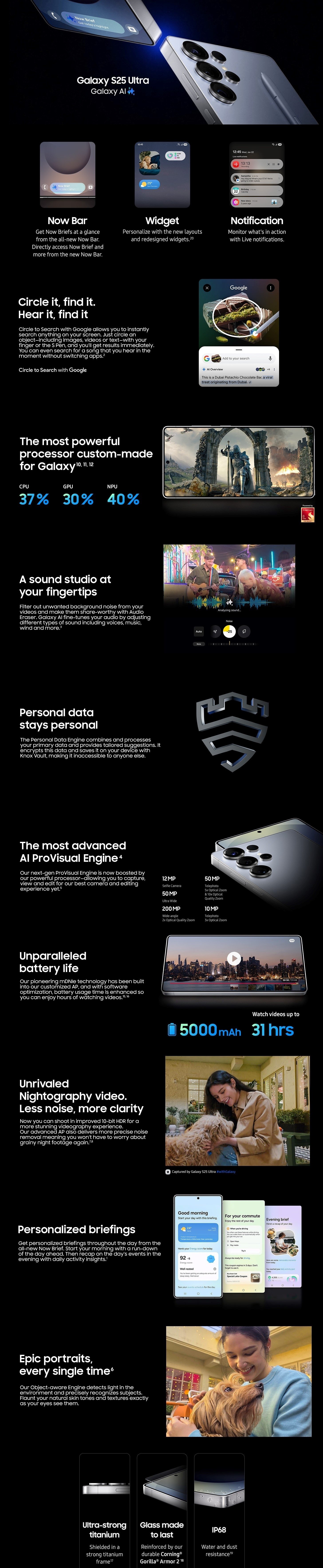 Samsung Galaxy S25 Ultra 5G 512 GB, 12 GB RAM, Titanium Black, Mobile Phone