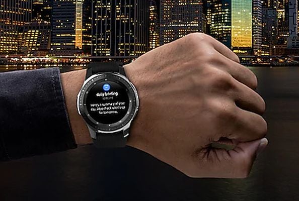 Wake up to what you need to know. Galaxy Watch detects when you wake up, displaying a morning briefing with the weather, today's schedule, reminders, and more.