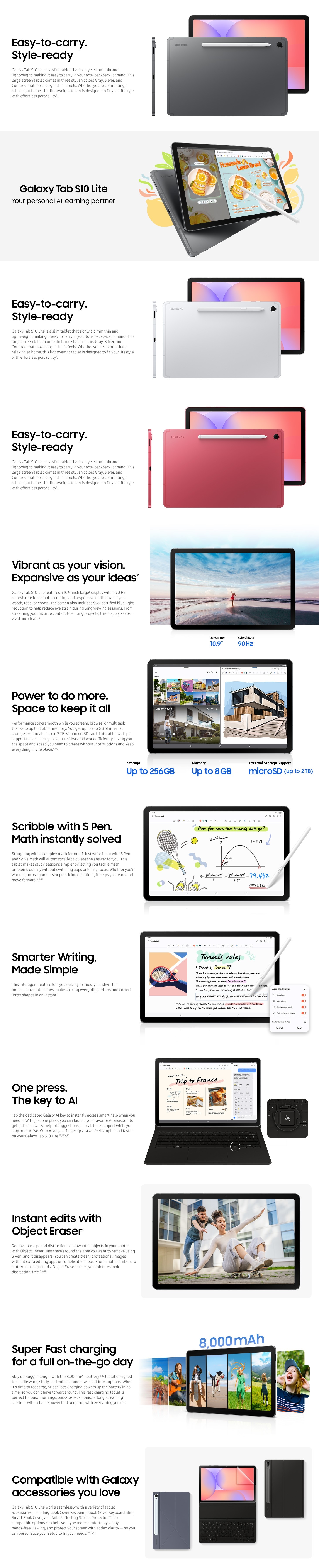 Samsung Galaxy Tab S10 Lite 27.70 cm (10.9 Inch) Wi-Fi + 5G Tablet with S-Pen, 8 GB RAM, 256 GB, Gray, SM-X406BZAEINU