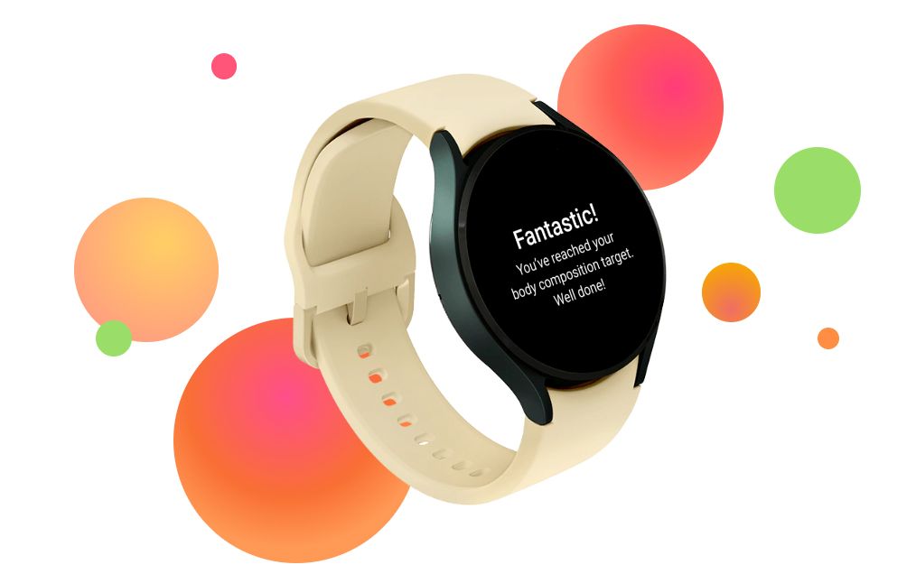 Track your progress toward your health goalsSet targets for your weight, body fat percentage, and skeletal muscle. Track your progress and receive reminders on your Galaxy Watch4 to keep you motivated. Celebrate your achievements with badges and build a healthy body from the inside out.