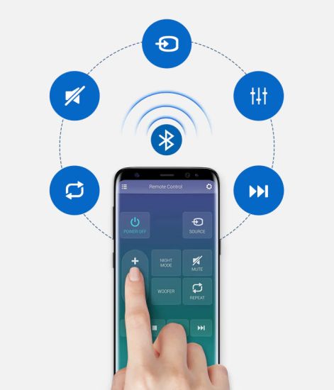 Control your Soundbar with the Samsung Audio Remote App on your smartphone or tablet running on Android. Simply connect using Bluetooth to control all your key Soundbar functions and play your favorite song lists on your mobile device through one single app.