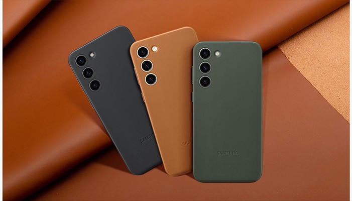 Crafted with elegance, the case made of genuine leather adds extra quality and style to your Galaxy S23+ phone. Available in three colors - black, camel and green, the Leather Case provides protection with class.