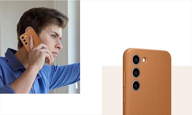 Crafted with elegance, the case made of genuine leather adds extra quality and style to your Galaxy S23+ phone. Available in three colors - black, camel and green, the Leather Case provides protection with class.