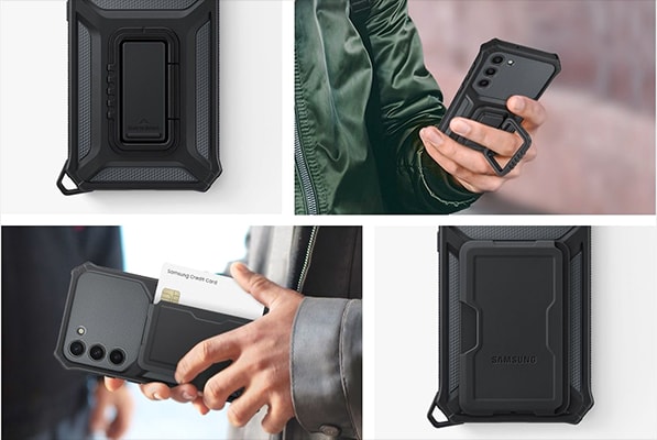The case is designed to ensure a firm yet comfortable grip. You can easily carry your credit card in the card slot, replace it with a grip or a kickstand for a secure hold, depending on your necessities.