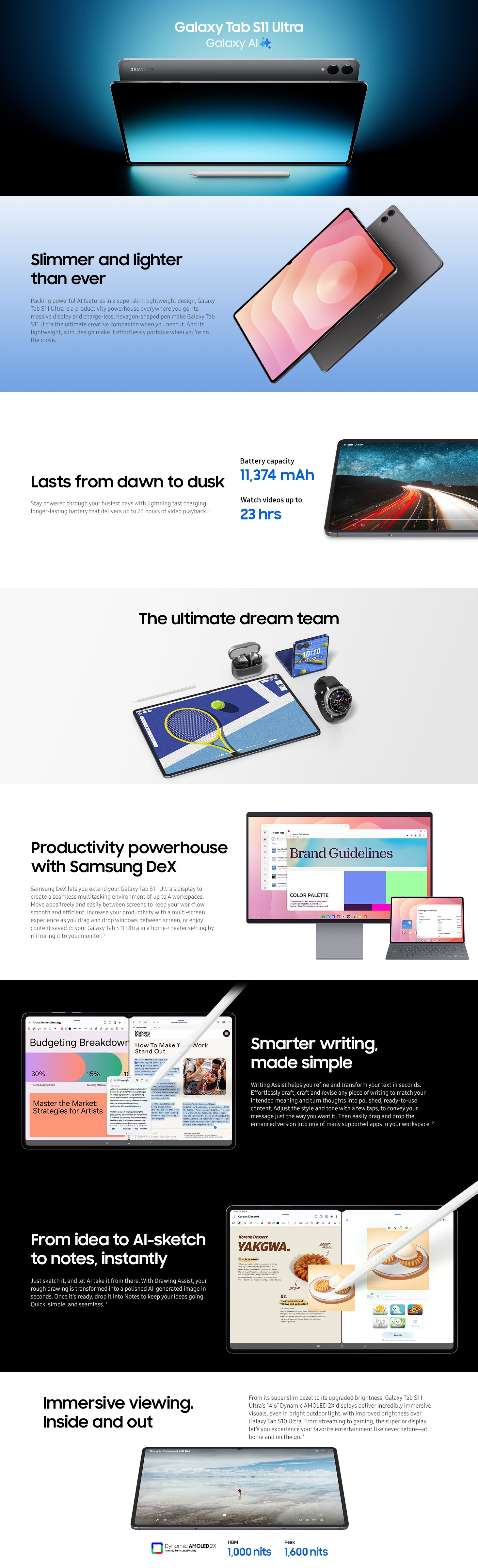 Samsung Tablet S11 Ultra 37.08 cm (14.6 Inch) Wi-Fi + 5G Tablet with S-Pen, 12 GB RAM, 256 GB, Silver, SM-X936BZSAINU