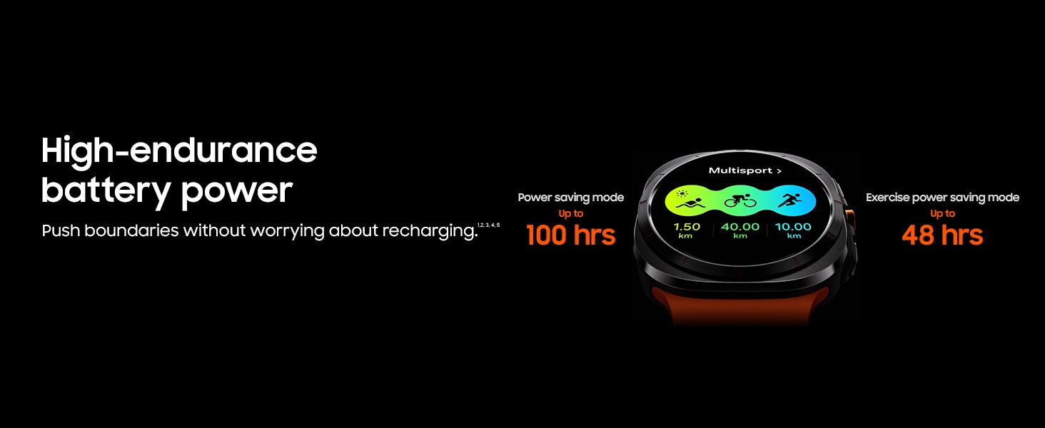 - HIGH PERFORMANCE: The Galaxy Watch ULTRA is powered by a 3nm processor that is three times faster, boosting your daily activities and extending battery life for up to 100 hours. The double pinch gesture is convenient for taking pictures, answering calls, or turning off the alarm. The watch also features Dual-Frequency GPS for improved and consistent location tracking.